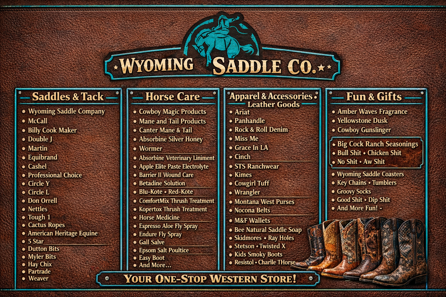 We know that your horse is a valuable investment, and for many, their work partner and best friend! So remember, whether you’re a trail rider, competitor or ranch hand, a well-made saddle will go a long way in the relationship between you and your horse. It will make your time in the saddle more enjoyable! Let us help you design a saddle to meet your needs or choose one from one of the top quality companies we work with.